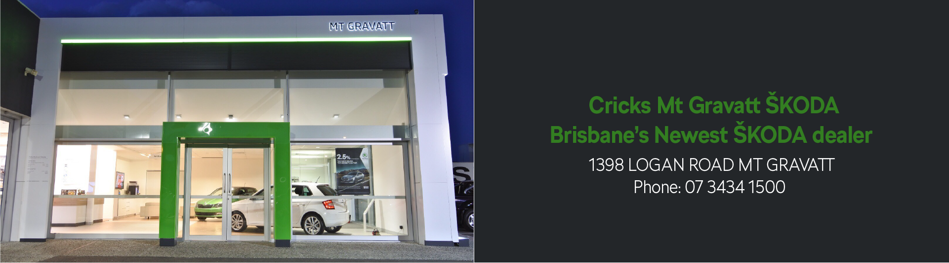 Cricks Mt Gravatt ŠKODA is proud to represent ŠKODA at our modern, fully equipped, dealership in Mt Gravatt which displays the complete ŠKODA range of new and previously owned cars.